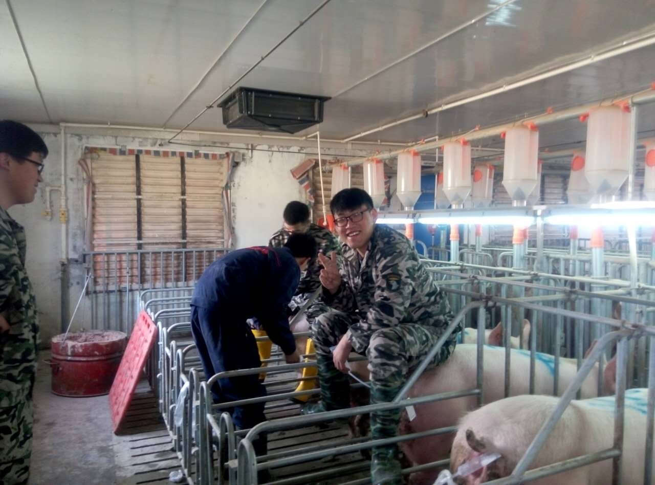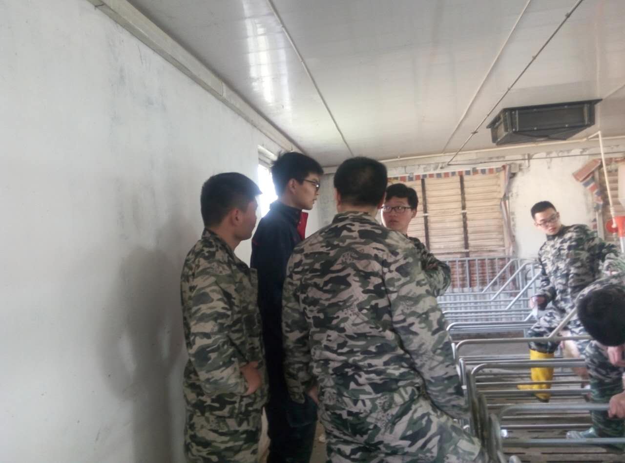 李总代表公司为同学们做了动员讲话,在简要介绍江苏梅林畜牧有限公司的发展历程后,对各位同学又提出了殷切的期望,希望同学们珍惜和把握学习机会,锻炼动手能力,积累一线生产经验,能够为企业和社会创造价值,实现个人理想。随后,对同学进行了安全生产、规章制度等的培训。下午学员们经过必要消毒处理以后,正式进入猪场开始了实习生活。