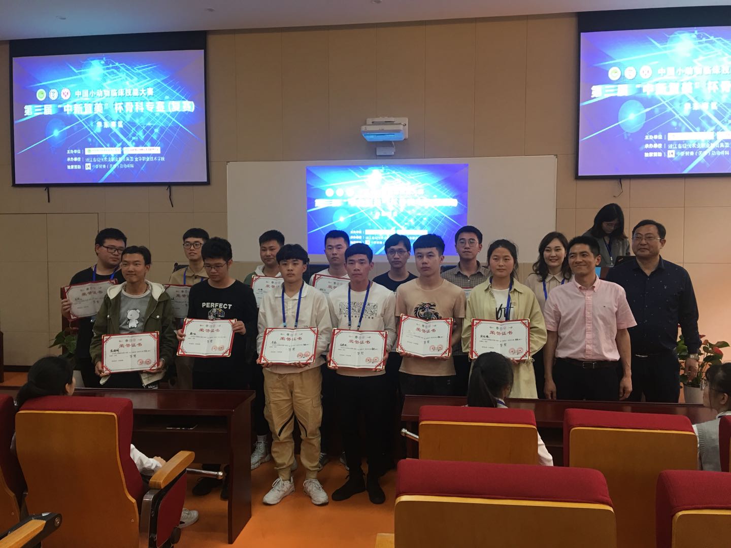 第三届中国小动物临床技能大赛—第三届“中新贺美”杯骨科专赛华东赛区复赛由中国现代农业职业教育集团、东西部小动物临床兽医师大会联合主办。本次骨科专赛复赛是在理论初赛的基础上,参照AO标准,并根据目前小动物诊疗行业和宠物职业教育实际情况,设置术前静脉通路建立、股骨大转子撕脱性骨折内固定、股骨中段斜骨折内固定、股骨远端横骨折内固定以及闭合手术通路等竞赛内容,39位来自菏泽学院、湖州市现代农业技术学校、江苏农林职业技术学院、江苏农牧科技职业学院、金华职业技术学院、山东畜牧兽医职业学院、温州科技职业学院和徐州生物工程职业技术学院等7所高校的大学生进行了激烈角逐,我院的徐纪缘、李磊等选手全部获得一等奖,王玉燕、王善辉两位老师获得优秀指导老师奖。总决赛将于今年5月中旬在厦门举行,我校一等奖获得者徐纪缘、李磊到时将赴昆明在全国同行面前展现我校风采。
