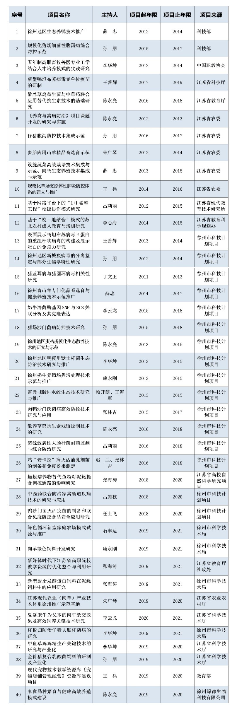 近5年主持的市级以上课题项目情况统计表