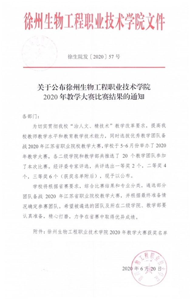 本次比赛,各二级学院和教学部共推选了20个教学团队参加。经评委专家评选,共评选出一等奖2 个,二等奖4 个,三等奖6个。