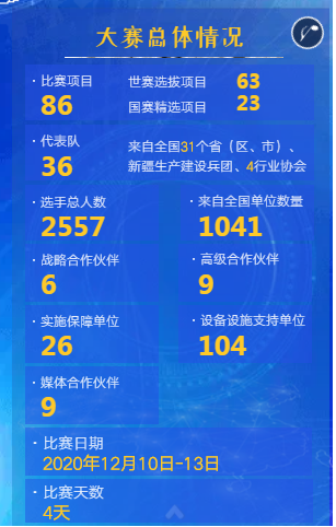 本次大赛共有2500多名选手、2300多名裁判人员参赛,是新中国成立以来规格最高、项目最多、规模最大、水平最高的综合性国家职业技能赛事。