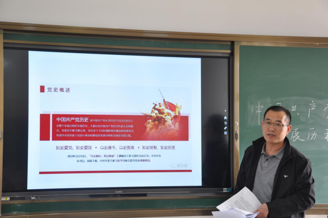 牛老师从革命先烈蔡和森同志最早提出“中国共产党”这一名称讲起,详细介绍了中国共产党的发展历程、关键会议、重要人物以及他们的光辉事迹,穿插讲解了中国共产党不同时期的任务、路线和纲领。牛老师的党课循循善诱,旁征博引,妙趣横生赢得大家阵阵掌声,也使同学们发自内心认识到中国共产党所付出的一切努力,进行的一切斗争,作出的一切牺牲,都是为了坚守为中国人民谋幸福、为中华民族谋复兴的初心和使命。