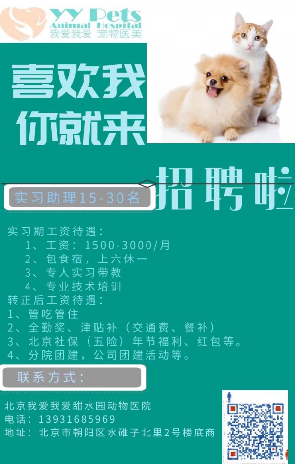 北京我爱我爱甜水园动物医院2022年招聘信息