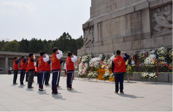 在雄伟庄严的淮海烈士纪念塔前,全体人员庄严肃立,向为民族解放、国家富强和人民幸福英勇献身的革命烈士默哀。随后学生代表托起花篮,迈步缓缓走向纪念塔,将花篮摆放到纪念塔前,并仔细整理花篮缎带。整缎完毕后,大家绕塔一周,驻足瞻仰塔基上的场景浮雕,当年淮海战役壮观的场面和战士们视死如归的气势仿佛重现在眼前。观详烈士名录,怀想革命先辈们浴血奋战的历史,不无感叹革命先烈英勇无畏的壮举。严守纪律、团结奋战、不怕牺牲、勇于奉献的精神深深触动着在场的每一个人。