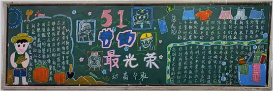 五一劳动节即将来临,为使同学们牢固树立劳动最光荣的意识、珍惜劳动成果,同时进一步深化校园文化建设,动物工程学院沛县校区组织开展了以五一劳动节为主题的黑板报评选活动。各班踊跃参与,充分发挥各自的聪明才智,并精心制作。