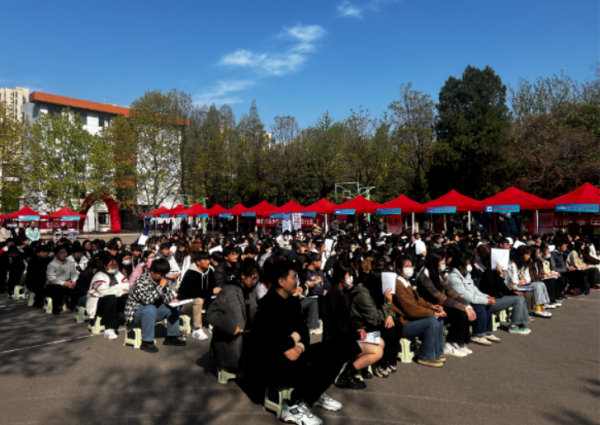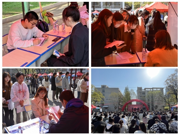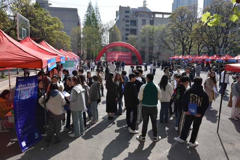 2023年4月7日,我校生物医药类专业专场双选会在学校篮球场隆重开幕,江苏恩华药业、扬子江药业、江苏恒瑞医药、金斯瑞生物等34家生物医药龙头、创新企业参会,为即将走出校门的287名毕业生提供了518个就业岗位。