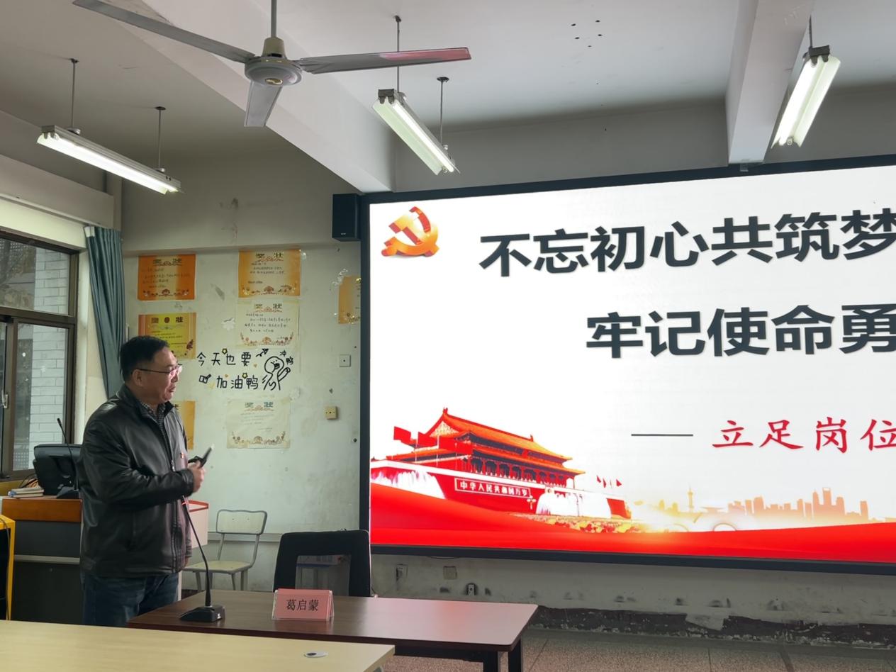 葛书记从“共产党人的初心和使命是什么?”“为什么要不忘初心,牢记使命?”“怎样才能牢记初心,不辱使命?”“牢记初心,立足岗位作贡献。”四个方面进行阐述,以史为鉴,以革命先辈和革命事迹为例告诫全体党员,需坚守政治灵魂,敢于担当责任,发扬民族精神,不忘人民群众和党的初心。葛书记指出全体党员需从言行举止等方面进行自我约束,做好党的模范,在其位谋其职,不辜负人民群众的信任。同时希望全体学生党员在提高政治站位、端正态度言行、培养道德认知、对标先进典型的生动实践中真正推动学习贯彻习近平新时代中国特色社会主义思想走深走实,把伟大思想的真理力量转化为指导实践、推动工作的实践力量,把学工党支部建成坚强的战斗堡垒。