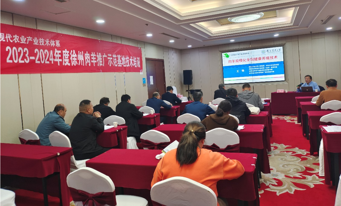 徐州市养羊历史悠久、文化底蕴深厚,是江苏省两个肉羊主产区之一,随着规模化养殖不断增加,肉羊养殖新问题也不断涌现。徐州生物工程职业技术学院紧盯徐州养殖业发展现状,2024年4月17日,借助江苏现代农业(肉羊)产业技术体系徐州推广示范基地,邀请江苏现代农业(肉羊)体系首席专家、南京农业大学王锋教授和疾病防控岗位专家、扬州大学成大荣教授对沛县养殖业农技人员进行专场培训。