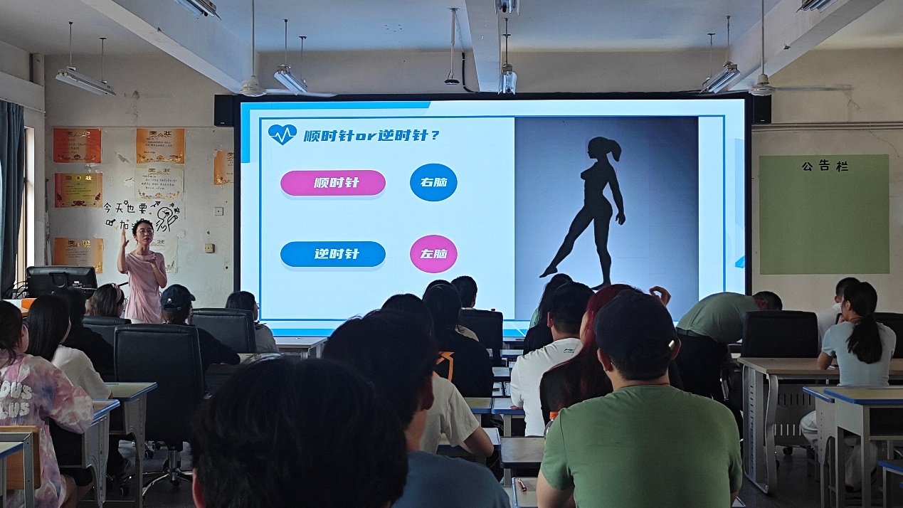 王晴老师以《你好,阳光使者》为题进行专题授课,以“顺时针or逆时针”的问答互动开场,迅速拉近了彼此的距离,现场氛围轻松活跃。王晴引导参培师生通过互动游戏体验感受自己的情绪状况,并围绕常见的心理困扰,分析原因,找到压力来源,提出专业建议。提振学习工作精气神,为大家积极赋能。