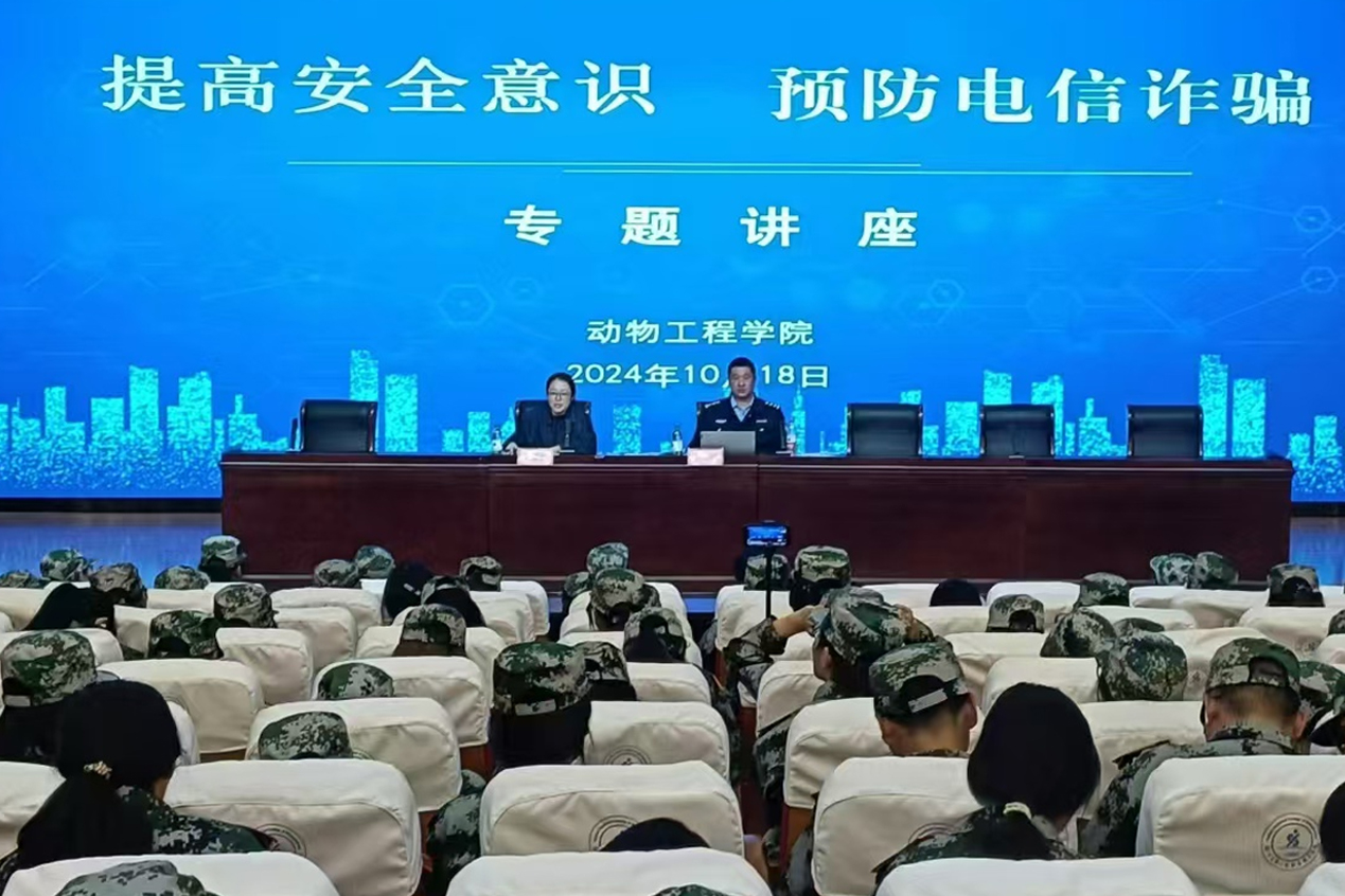 为切实防范、应对各类网络电信诈骗,提升师生的反诈警觉性,动物工程学院于10月18日晚开展 “提高安全意识,预防电信诈骗” 主题讲座,全体新生参加此次活动。
