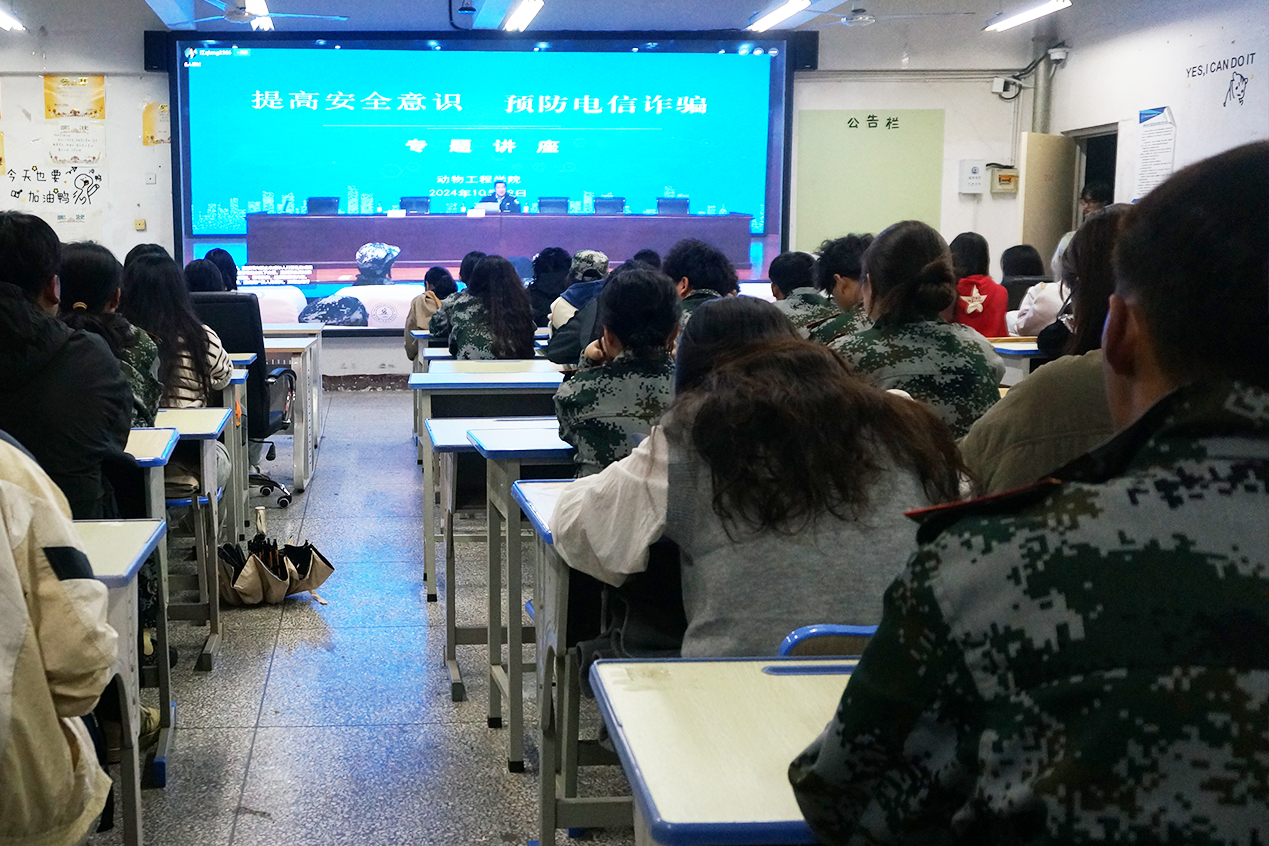此次主题教育讲座的举办,为动物工程学院的同学们敲响了预防电信诈骗的警钟,提高了大家的安全意识和防范能力,为构建安全和谐的校园环境奠定了坚实基础。