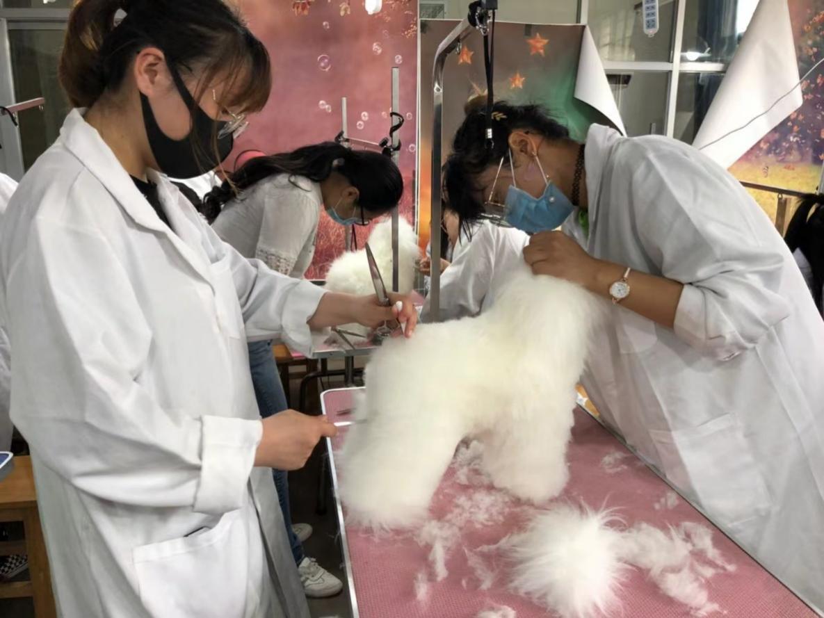 在实践环节,同学们将课堂所学理论知识与实践内容相融合。他们仔细研究不同宠物品种的毛发特质、骨骼结构与性格特点,只为打造独具匠心的造型。