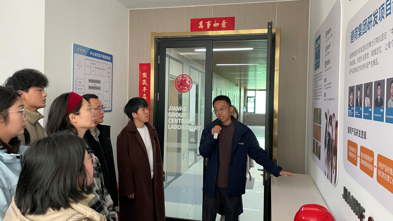 江苏健荷牧业科技有限公司党支部书记、总经理朱娟代表集团对学院一行人表示热烈欢迎,并详细介绍了企业生产、研发相关的基本情况。健荷集团研发中心研发经理苏效双带领学院一行参观了研发中心,行政中心负责人刘赛带领参观党建活动室和集团的其他功能区域。
