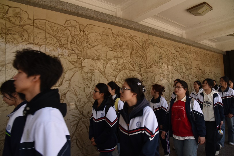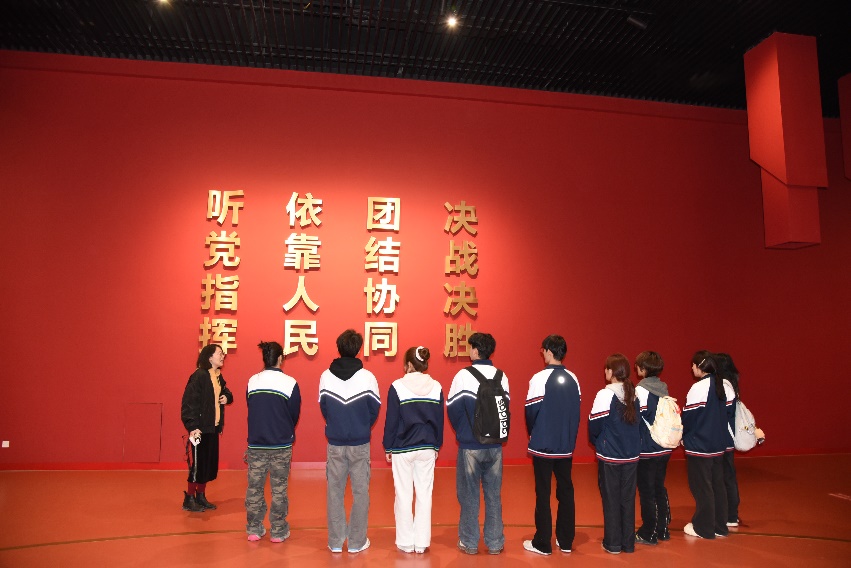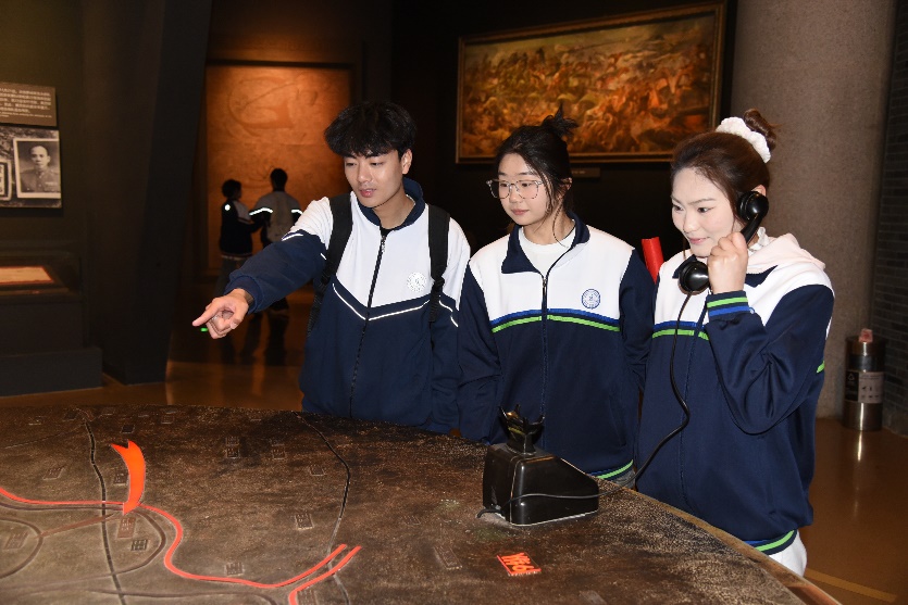 随后,大家瞻仰了淮海战役总前委雕像,感受老一辈革命家坚定信念、高尚人格与豪迈风采。进入双拥展览馆后,小推车、蓑衣、狗皮、葫芦瓢等一件件斑驳的文物映入眼帘,让驻足观看的师生仿佛置身淮海战役时期徐州百姓争先恐后、前赴后继支援前线的场景,感受到当年支前民工们“舍小家、为大家”的情怀,深刻体会到“人民是历史的创造者”这一真理。