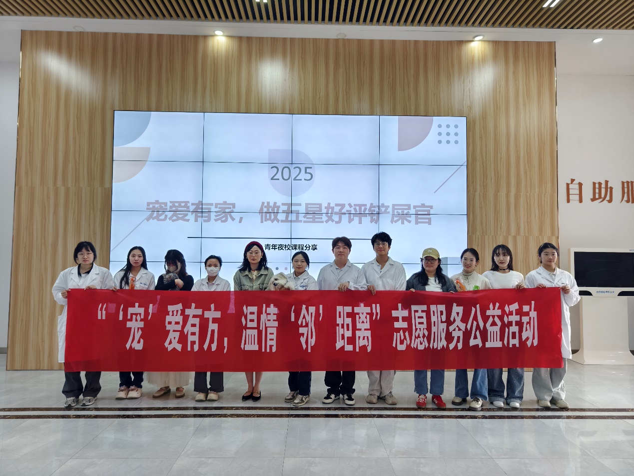 为响应2025年世界兽医日“动物健康需要团队协作”号召,倡导文明养宠理念,促进“人与自然和谐共处”理念深入人心,强化社区群众“人兽共患病”防控意识,扎实推进“大学生社区实践计划”,强化动物工程学院学生对专业学习的热爱,形成并履行“专业服务社会”的责任感,动物工程学院团总支与鼓楼区团区委、礼蓝(上海)动物保健有限公司在鼓楼区环城街道米兰社区进行校地、校企共建,联合开展“‘宠’爱有方,温情‘邻’距离”志愿服务公益活动。