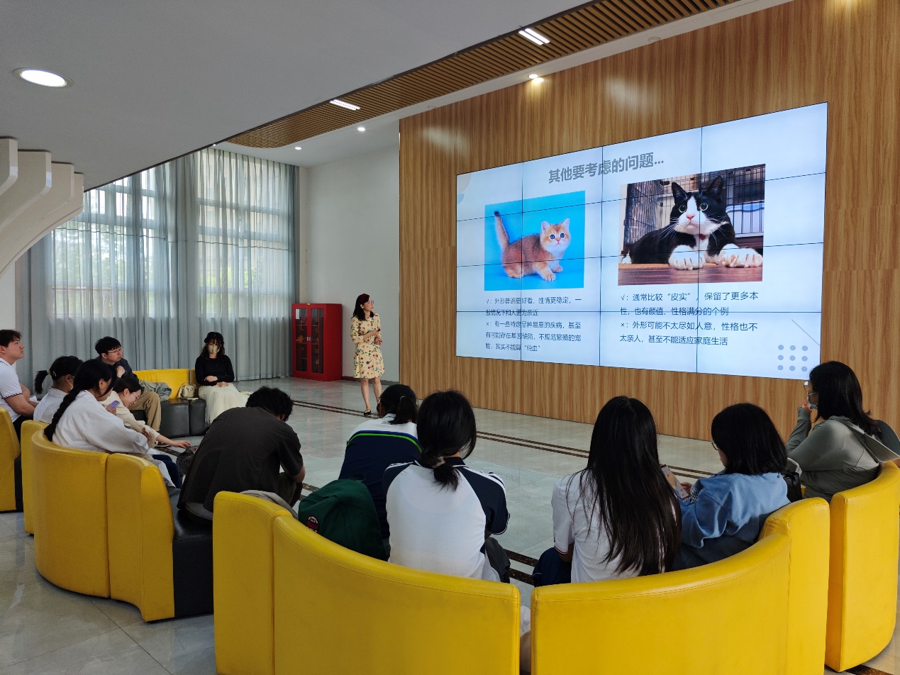 学院团总支书记曹轶男围绕“科学养宠”这一主题,就宠物日常养护、宠物常见传染病、寄生虫病防控等方面,为到场的“新手铲屎官”和“准铲屎官”耐心讲解定期免疫、牵绳遛犬、清理粪便等知识,并向“铲屎官”们发放宠物寄生虫防控所需的药品与宣传资料,针对大家提出的关于宠物日常护理、科学饮食、疾病预防等问题,给出专业、实用的建议。活动获得了社区群众的好评,让在场师生备受鼓舞,切实感受到了“专业服务社会”的价值所在。