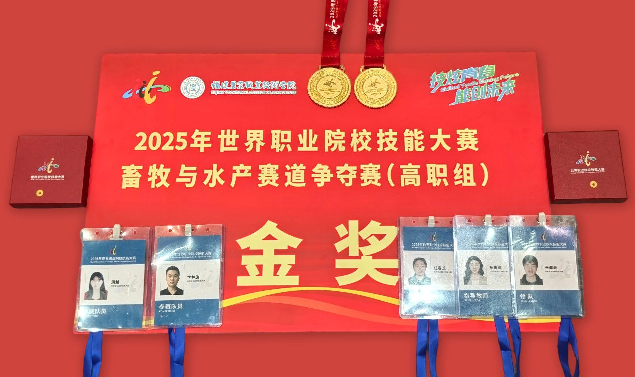 8月18-22日,2025年世界职业院校技能大赛畜牧与水产赛道争夺赛(高职组)在福建农业职业技术学院举办。作为教育部等部委主办的全国性赛事,全国30个省(自治区、直辖市)的103支队伍同台竞技。我院代表队经过激烈角逐,斩获金奖。