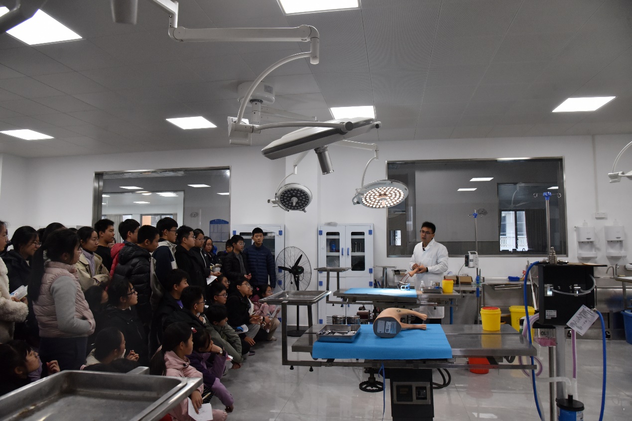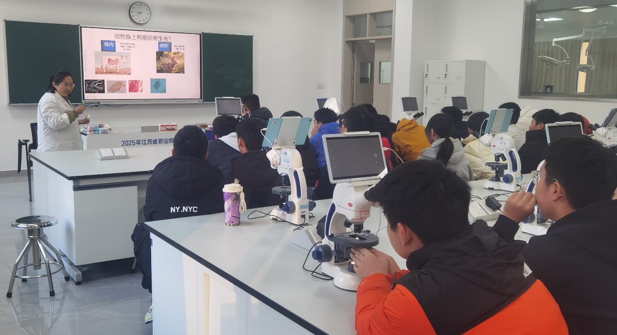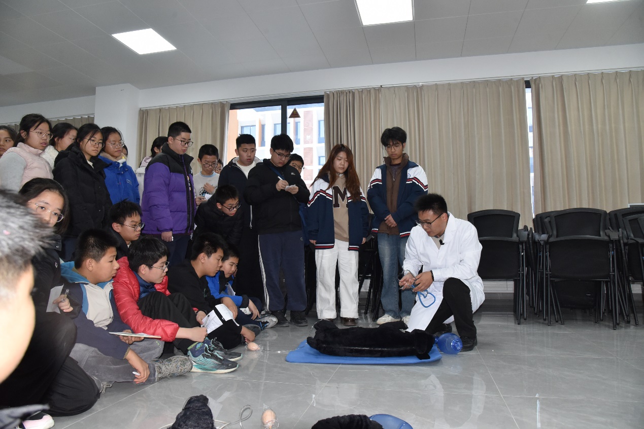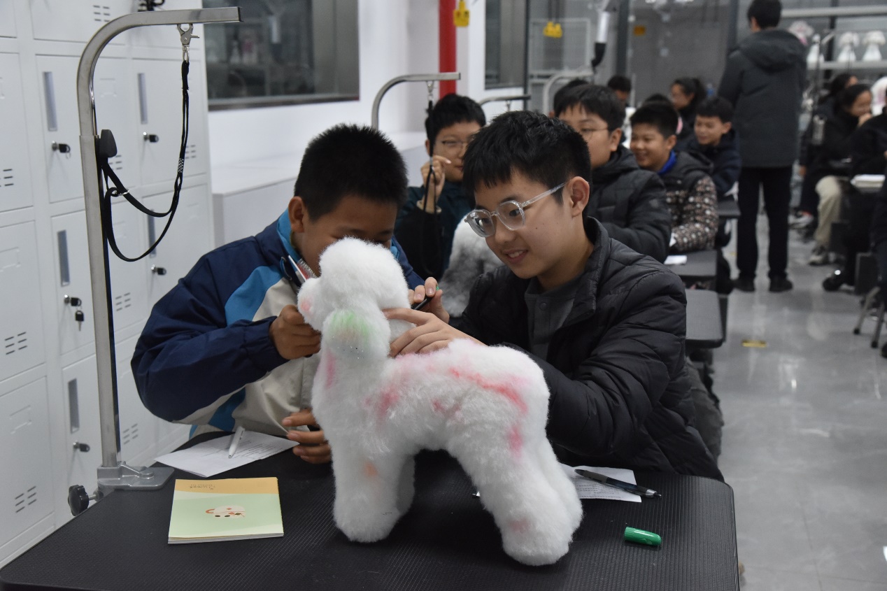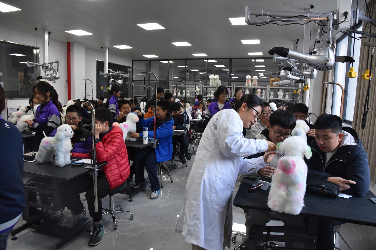 活动设置六大特色环节,专业性与趣味性深度融合。徐淮白山羊展示区,学生聆听淮海经济区特有品种价值讲解,细致观察山羊外形特征;动物组织器官认知课上,“3D 器官模型拼装” 小游戏打破传统教学模式,学生以小组协作方式轻松掌握被皮、循环等系统知识;水产实训室里,鲜活的小龙虾吸引众人目光,师生围绕养殖系统运行原理与小龙虾生活习性展开深入探究;“寄生虫与动物健康” 课堂上,动画演示直观呈现传播过程,结合显微镜下的标本观察,让抽象的预防知识变得清晰易懂;模拟宠物医院与美容实践环节,学生化身 “小兽医” 学习急救、体温测量、心肺听诊等基础操作,还在指导下动手尝试宠物毛发梳理与修剪,实践热情十足。