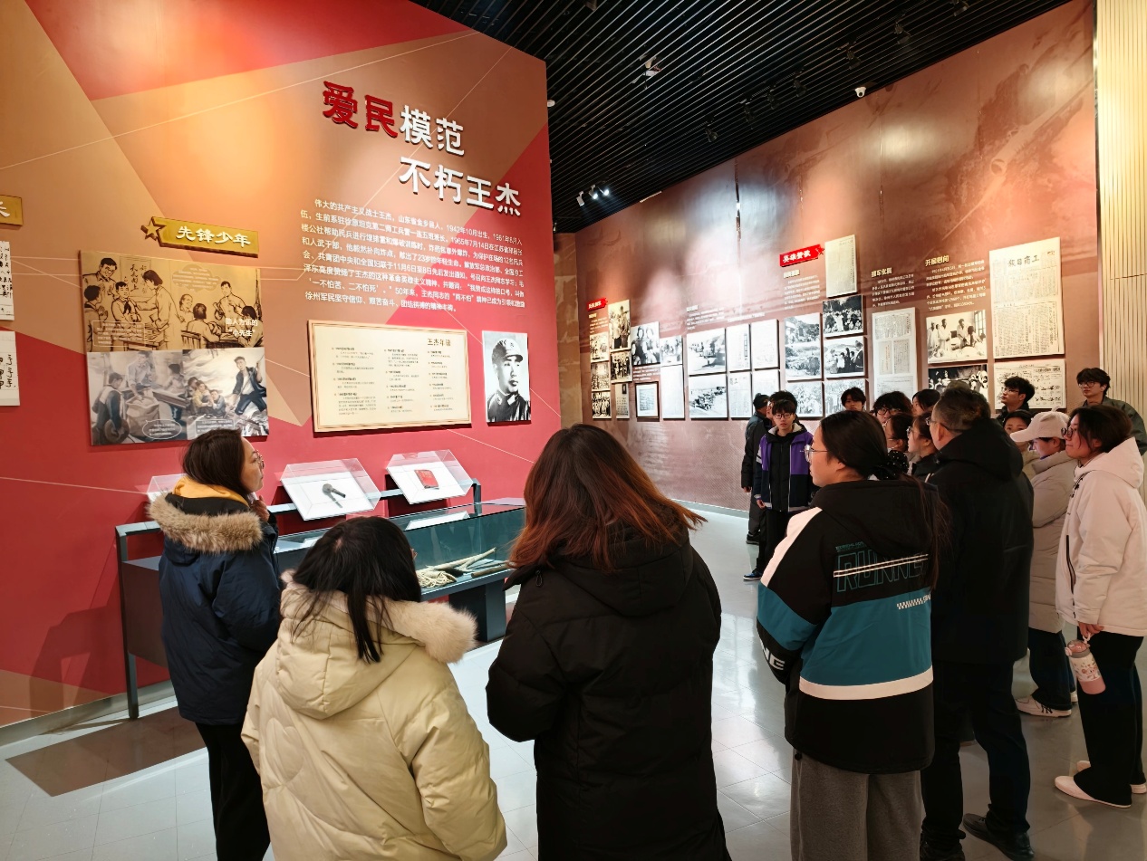 在烈士纪念塔前,牛绍文围绕淮海战役历史脉络,为同学们普及革命历史知识;曹铁男结合淮海战役史实,讲述革命先辈浴血奋战的感人故事。同学们还参观了淮海战役纪念馆,通过珍贵史料、实物展品直观感受革命先辈为国家解放、人民幸福不畏牺牲的崇高精神。