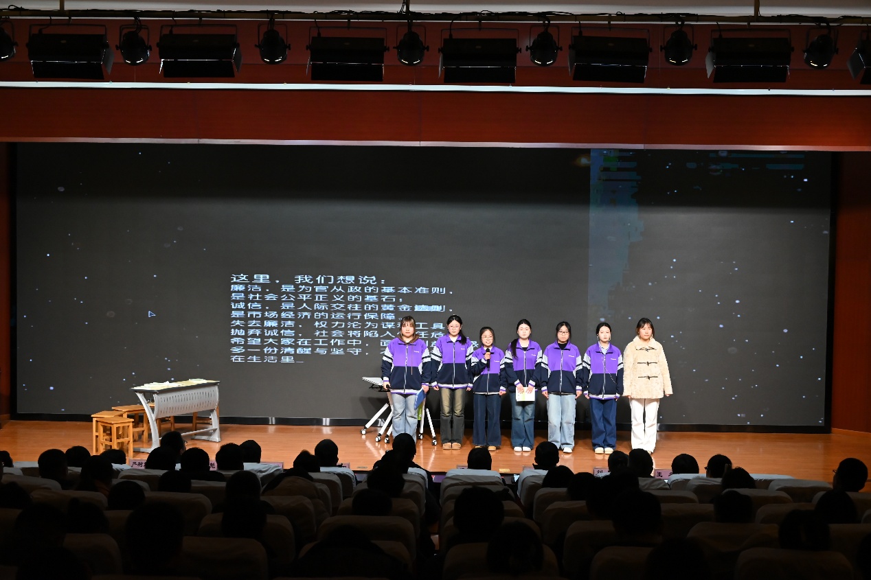 自活动通知下发以来,学院积极响应、用心组织。各班级精心构思、踊跃报名,营造出全员参与、竞逐优创的浓厚氛围。两支参赛班级团队从众多作品中脱颖而出,进入校赛阶段更是精心打磨、潜心付出,利用课余时间对台词、走位及表演细节不断优化,以严谨专注的态度诠释了对廉洁文化的深刻理解。